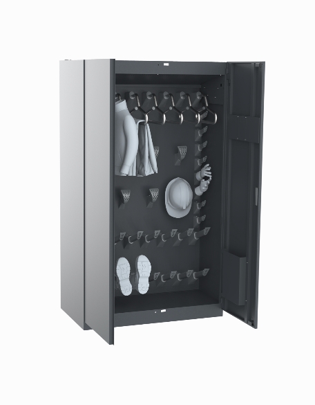 Den avtakbare, ventilerte kleshengeren i rustfritt stål (Air Hanger) gjør tørkeprosessen enkel og hygienisk. Hele konstruksjonen består av varmgalvanisert, høykvalitets, tynnplatemateriale med pulverlakk for maksimal korrosjonsbeskyttelse.