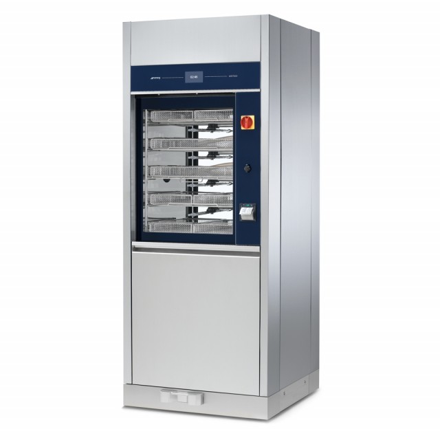Smeg WD7010 er en avansert høyytelses vaskedesinfektor med kapasitet til 12 DIN-laster. Maskinen har et robust vaskekammer i AISI 316L rustfritt stål og dobbel spylearm, som sikrer grundig og jevn rengjøring.