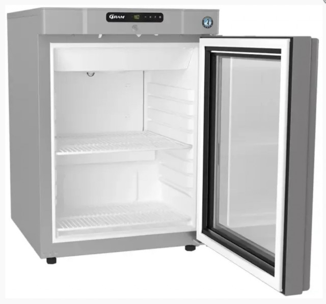 Hoshizaki Compact FG 220 R-DR G E er en stilren fryser med glassdør som gir full oversikt over innholdet, uten at døren må åpnes. Den nikkelfrie rustfrie stålkonstruksjonen kombinert med hvit finish gir et elegant og hygienisk inntrykk som passer både på kjøkken og i salgsområder.
