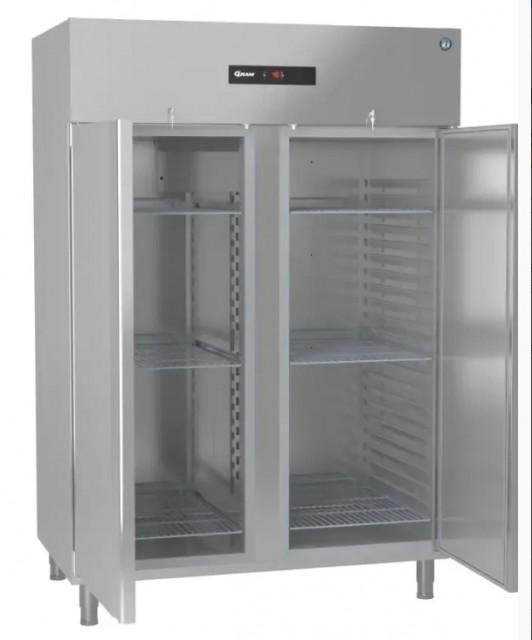 Gram Advance K 140-4 L er et kraftig kjøleskap med to dører, ben og HC-kjøling. Med et netto volum på 797 liter og utvendige mål på 1344 × 830 × 1980–2030 mm, kombinerer det høy kapasitet med driftssikkerhet.