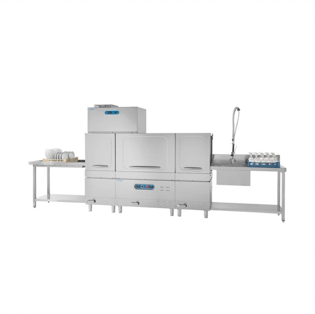 Vaske- og skyllearmer i rustfritt stål er lett avtakbare for rengjøring. Vaskekammeret har avrundede kanter for å forhindre vannstagnasjon, og den motbalanserte hevedøren i full bredde har dobbel vegg, sikkerhetsmikrobryter og låsemekanisme. Tankfiltrene er lett tilgjengelige, og tømming skjer via frontmontert hendel. Retningen på kurvene kan reverseres med minimal justering.