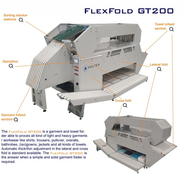 FlexFold GT200 er en frittstående bretter som kan brette og sortere et bredt utvalg av plagg og håndklær, som
