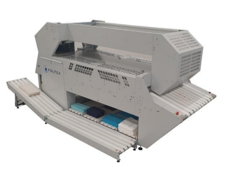 Håndklær kan mates blandet fra transportøren på den andre siden av maskinen.