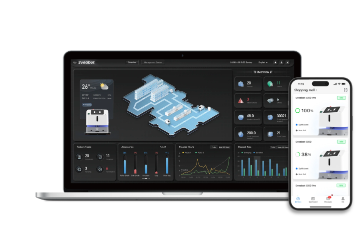 Sammenlignet med andre innendørs rengjøringsroboter trenger du ikke å bytte ut forskjellige deler for å utføre forskjellige rengjørings-, vasking-, støvsuging- og skrubbefunksjoner. Selv en sugekraft på 24 kPA takler all slags smuss. Perfekt for: rengjøring av hotellgulv, tepper, kontorgulv, kjøpesentergulv, sykehuslokaler og kontinuerlig vedlikehold av ulike kjøpesentre døgnet rundt.