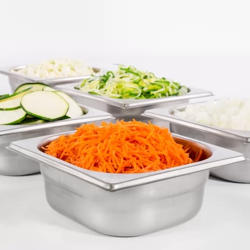 CA-41 er en høyproduktiv grønnsakskutter konstruert for profesjonelle kjøkken med svært store volumkrav. Med en kapasitet på opptil 650 kg per time og stor innmatingsåpning er den ideell for effektiv bearbeiding av både hele og oppkuttede råvarer.