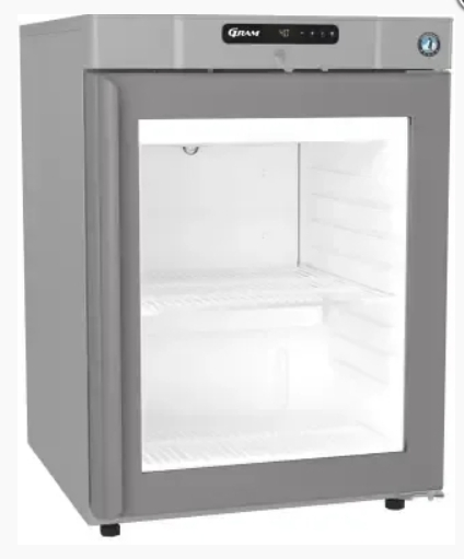 Hoshizaki Compact FG 220 R-DR G E er en stilren fryser med glassdør som gir full oversikt over innholdet, uten at døren må åpnes. Den nikkelfrie rustfrie stålkonstruksjonen kombinert med hvit finish gir et elegant og hygienisk inntrykk som passer både på kjøkken og i salgsområder.