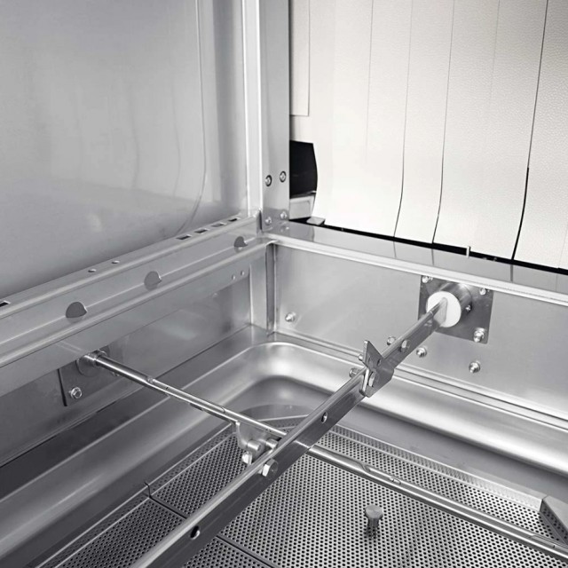 Vaske- og skyllearmene i rustfritt stål kan enkelt tas ut for rengjøring. Vaskekammeret er utformet for å hindre vannstagnasjon og har avrundede hjørner for enkel vedlikehold. Den motbalanserte hevedøren i full bredde har dobbel vegg, sikkerhetsmikrobryter og låsemekanisme. Tankfiltrene i rustfritt stål kan fjernes uten verktøy, og tømming skjer enkelt via en hendel i front.