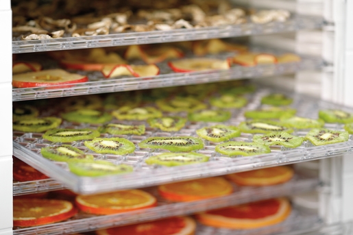 Dehydrator 120 tilbyr skånsom og effektiv tørking av mat, noe som bevarer smak, næringsstoffer og forlenger holdbarheten. Maskinen har 12 skuffer med 20 mm avstand mellom brettene og 6 avtakbare dehydratorrister i plast (285 × 325 mm).