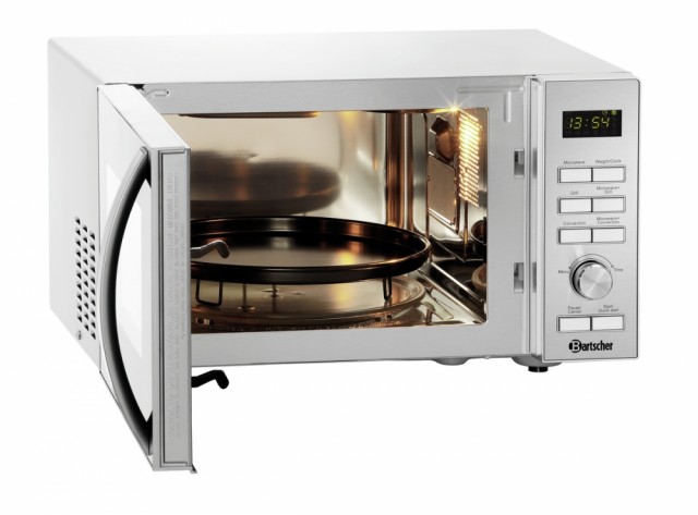 Denne mikrobølgeovnen kombinerer mikrobølge, grill og varmluft, noe som gir et bredt spekter av tilberedelsesmuligheter. Time og effekt kan justeres individuelt etter funksjon og behov.