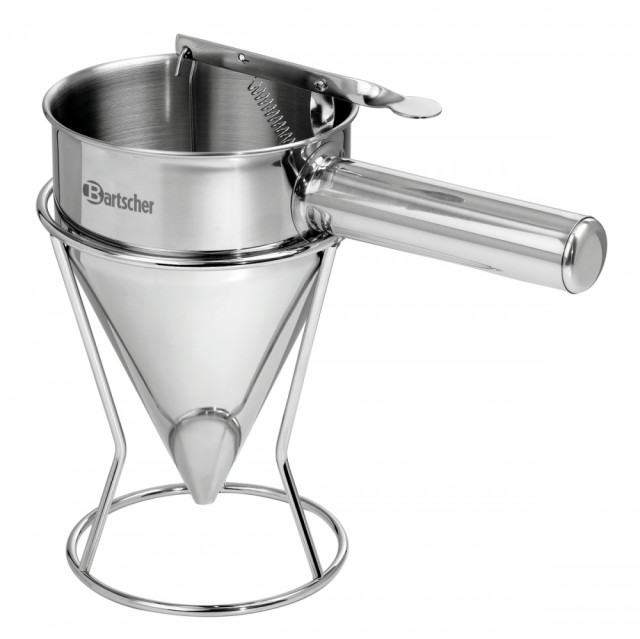 Den har et doseringshull på 8 mm som gir jevn flyt og presis porsjonering. Leveres med praktisk stativ for trygg oppbevaring mellom bruk, og er enkel å rengjøre takket være den glatte overflaten i rustfritt stål.