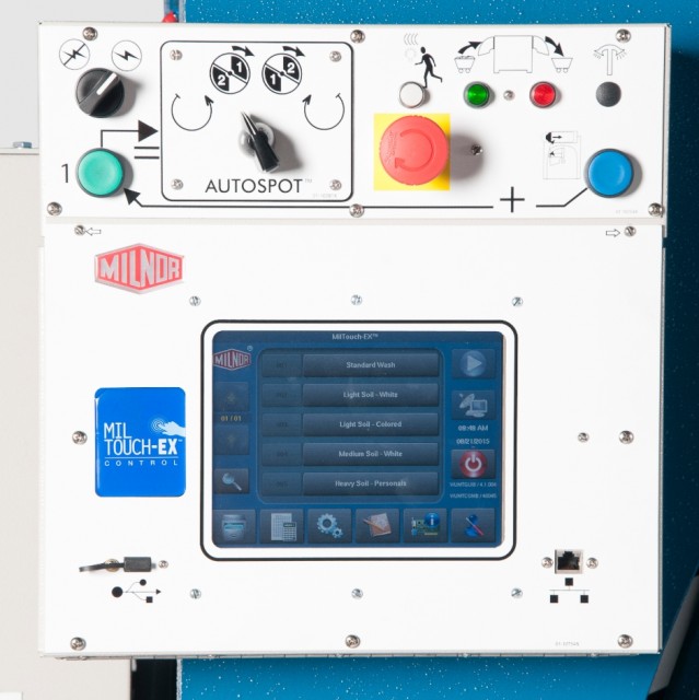 72044SR2 er en robust Hydro-Cushion vaskemaskin med MilTouch-EX™ fargeberøringsskjerm for enkel betjening og fleksibel programstyring. Maskinen har en delt trommel på 2945 liter (diameter 1,83 m, dybde 1,12 m), som gir balansert last og høy vaskeeffektivitet.