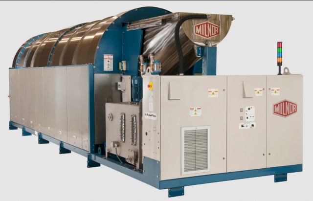 Milnor CBW® 76039 er bygget for å håndtere større batcher med maksimal effektivitet. Maskinen har dobbel trommelkonstruksjon og toppoverføring som sikrer rask vask og optimal kjemikaliebruk. Hver modul kan tilpasses for å møte spesifikke produksjonsbehov, med mulighet for å utvide systemet ved å legge til flere moduler, noe som gjør total lengde og kapasitet fleksibel.